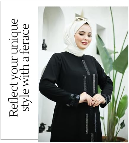 Abaya for Muslim Women | Plus-Size Long-Sleeve Zip-Up Hijab Abaya with Stone Details | Muslim Women's Fashion