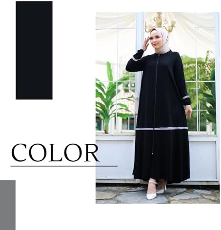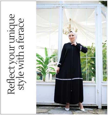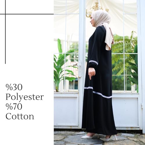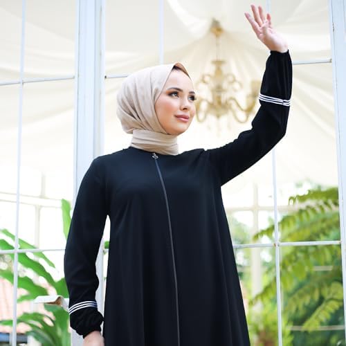 Abaya for Muslim Women | Zippered Long Sleeve Plus Size Modest Abayas with Piping Details | Muslim Women's Fashion