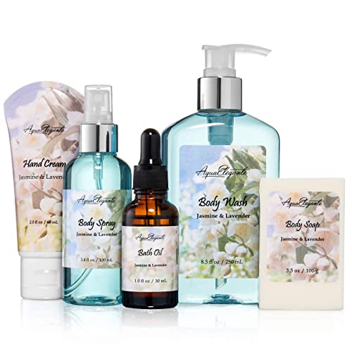 Bath Spa Gift Sets - Luxury Basket With Jasmine & Lavender - Spa Kit Includes Wash, Bubble Bath, Lotion, Bath Salts, Body Scrub, Body Spray, Shower Puff, Bathbombs, Soap and Towel