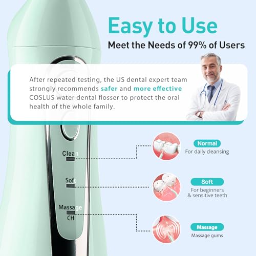 The COSLUS Water Dental Flosser Teeth Pick is a portable and rechargeable oral irrigator designed to enhance oral hygiene with ease and efficiency.One of the standout features of this device is its portability. Compact and cordless, it's ideal for travel or everyday use at home. The ergonomic design fits comfortably in the hand, allowing for easy maneuverability and control during use.The oral irrigator operates by utilizing water pressure to effectively remove food debris, plaque, and bacteria from between teeth and along the gumline. It features adjustable water pressure settings, allowing users to customize their experience based on sensitivity and cleaning needs.What sets the COSLUS oral irrigator apart is its ability to target and remove tonsil stones. Tonsil stones, or tonsilloliths, are small calcified masses that can form in the crevices of the tonsils. The pulsating water stream from the irrigator helps dislodge these stones gently and effectively, providing relief from discomfort and bad breath associated with tonsil stones.Additionally, the device comes with multiple interchangeable nozzles, including a specialized nozzle for targeting tonsil stones. This nozzle's design allows for precise and focused irrigation around the tonsils, ensuring thorough cleaning and removal of debris.The COSLUS oral irrigator is rechargeable via USB, offering convenience and eliminating the need for disposable batteries. The large capacity water tank (300ML) provides ample water for continuous use without frequent refills, making it suitable for thorough oral care sessions.While the COSLUS Water Dental Flosser Teeth Pick excels in its functionality and effectiveness, users may experience a learning curve in mastering the technique for optimal use, especially when targeting specific areas like tonsil stones.Overall, the COSLUS Water Dental Flosser Teeth Pick is a practical and efficient tool for maintaining oral health and hygiene. Its portable design, customizable settings, and ability to address issues like tonsil stones make it a valuable addition to any oral care routine.