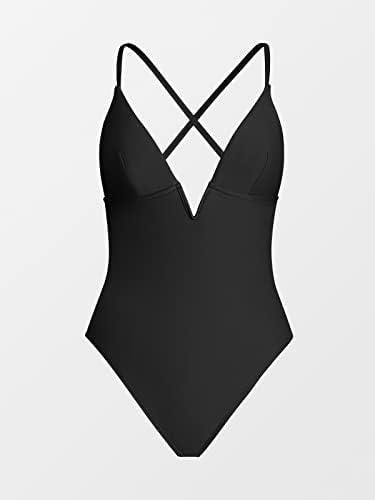 CUPSHE Women Swimsuit One Piece Bathing Suit Deep V Neck Crisscross Back Adjustable Strap