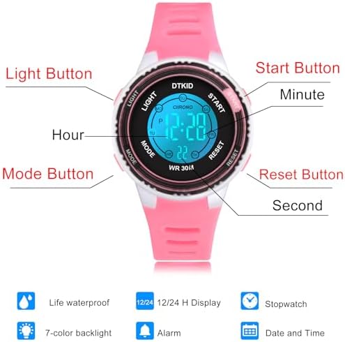 The multifunctional digital watch can be a good learning companion for children.The colored backlight and other auxiliary functions enhance children's practical ability and thinking skills.