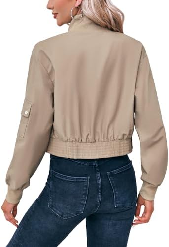 Womens Cropped Bomber Jacket Long Sleeve Zip Up Jackets With Pockets