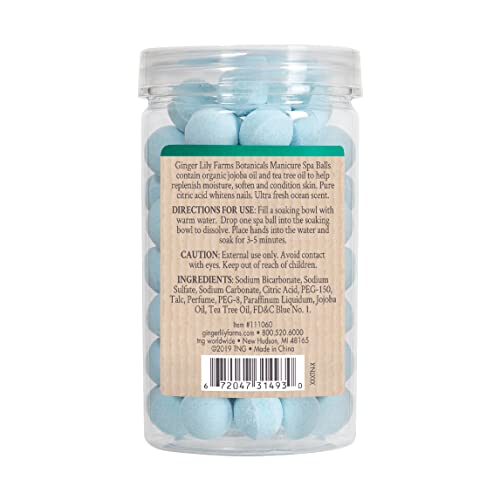 Ginger Lily Farms Botanicals Manicure Spa Balls have a super moisturizing and hydrating formula that helps prepare nails and cuticles for manicure services. These organic and natural spa balls replenish moisture, soften, and condition the skin, leaving it feeling soft and supple. With soothing properties and exquisite scents, our spa manicure balls effortlessly dissolve in water and help you relax.