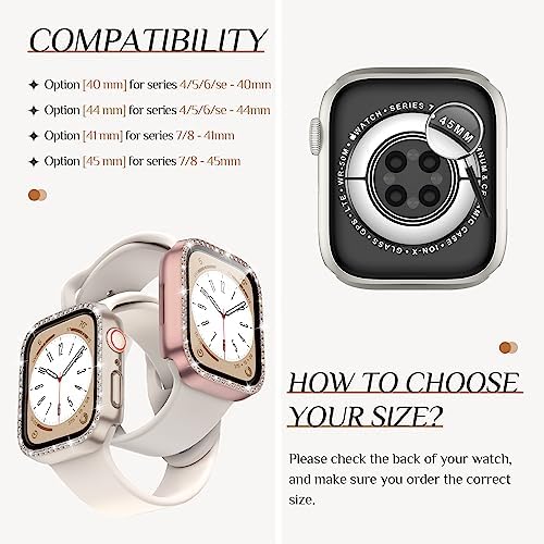 2in1 Waterproof Case Compatible Models iWatch Series 8/7/6/5/4/SE iWatch Series 8/7/6/5/4/SE iWatch Series 8/7/6/5/4/SE Apple Watch All Series Apple Watch All Series iWatch Series 8/7/6/5/4/SE iWatch Series 8/7/6/5/4/SE Feature Full rhinestones Double-rows rhinestones One-row rhinestones Double-rows rhinestones No rhinestone No rhinestone No rhinestone Waterproof Daily waterproof Daily waterproof Not waterproof Not waterproof Daily waterproof Daily waterproof Not waterproof Protection 360-degree protection 360-degree protection Full screen protection Edge protection Full screen protection 360-degree protection 360-degree protection Package 1 Pack 1 Pack 2 Pack 4 Pack 1 Pack 1 Pack 2 Pack