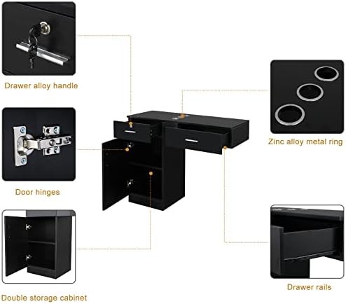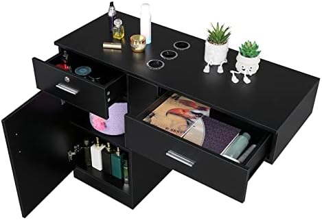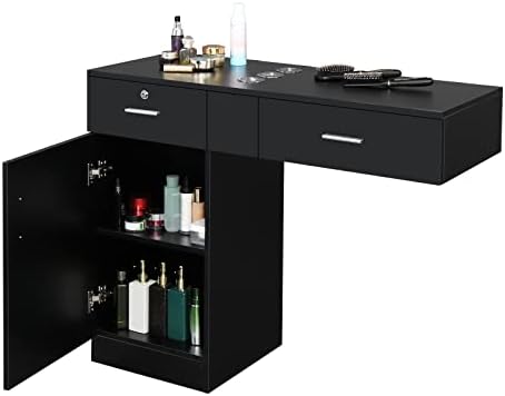 Goujxcy Modern Barber Salon Station, Salon Stations for Hair Stylist, Salon Barber Storage Cabinet Equipment