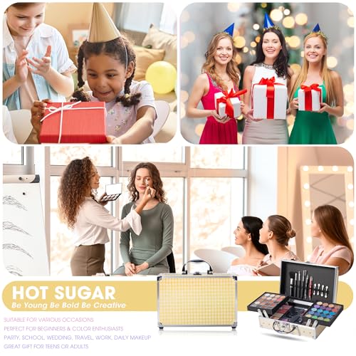 Hot Sugar Makeup Kit for Girls 10-12, Girls Makeup Set Ages 8-12, 14-16 With Aluminum Cosmetic Box (YELLOW HOUNDSTOOTH)