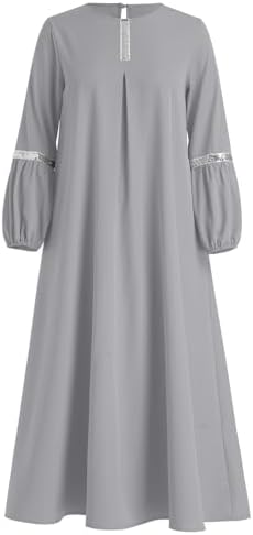 IDOPIP Muslim Abaya Dress for Women Casual Sequin Sundress Solid Dubai Kaftan Robe Party Long Sleeve Islamic Prayer Clothing
