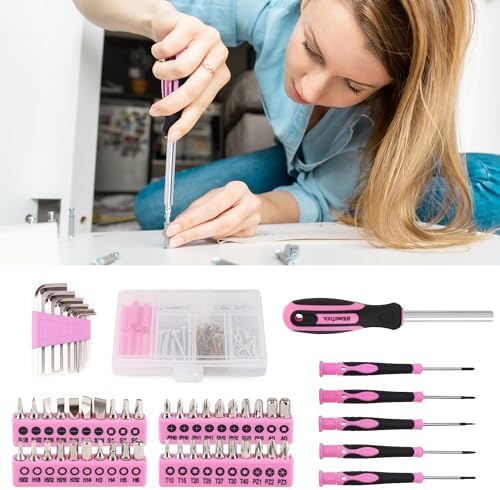 275-piece pink tool set: wrench, Allen key, claw hammer, level, screwdriver, screwdriver bit, tape measure, utility knife, pliers, scissors Batteries Included?