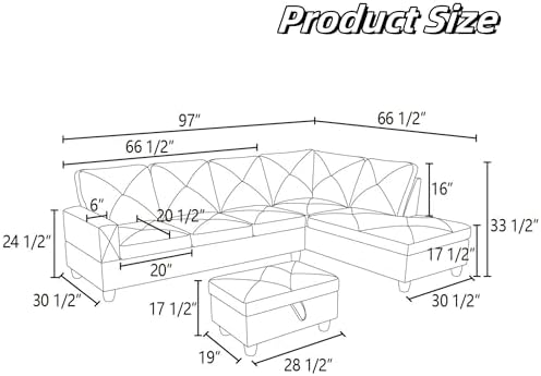 GlasFlength L Shaped Sectional Couches, Modern Convertible Lounge Leather Sofa with Ottoman Storage, Comfy Modular Sectional Sofa for Living Room Furniture Sets, Small Spaces, Black