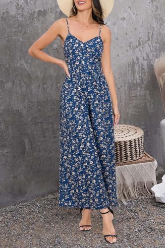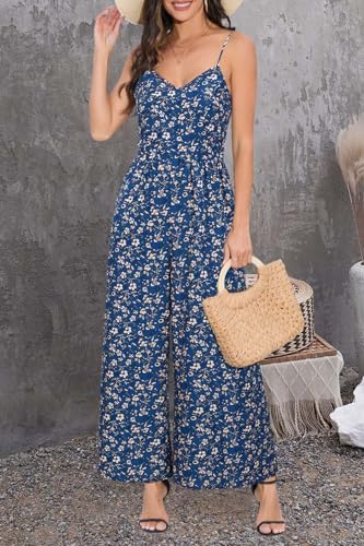LAISHEN Wide Leg Jumpsuits for Women Dressy Casual 2024 Summer Rompers Smocked Sleeveless Floral Jumpers with Pockets
