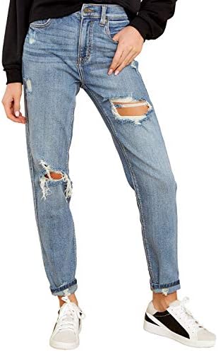 Women's Casual Boyfriend Jeans High Waist Mom Jeans Distressed Vintage Jeans