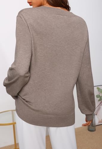 Featuring long lantern sleeves and a chic v-neck design, this sweater has a relaxed fit with drop shoulder and ribbed knit detailing at the cuffs, neck, and hem. The basic solid color and simple style make it a versatile piece that is suited for creating trendy fall outfits.