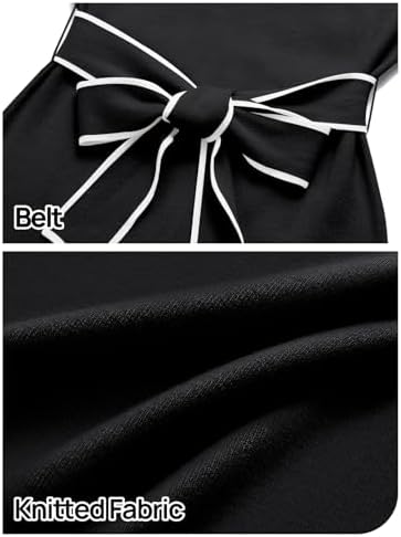 MEROKEETY Women's 2024 Long Sleeve Midi Sweater Dress Fall Mock Neck Color Block Tie Waist Bodycon Knit Dress