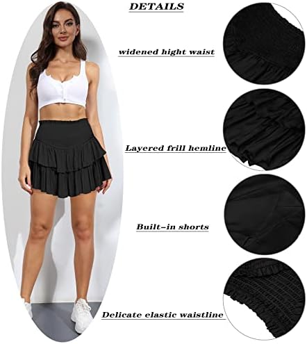 Women’s Summer High Waist Ruffle Elastic Waist Solid Lined Layered Flared Pleated Casual Beach Short Skirt
