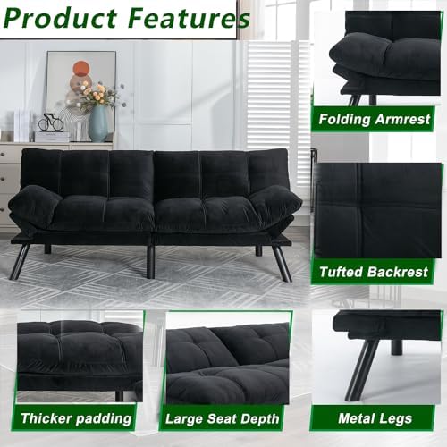 Black velvet folding sofa