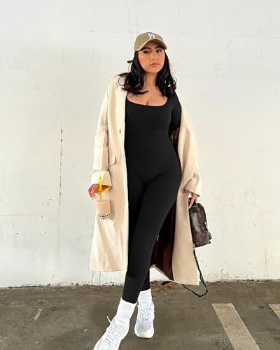 Simple design with square neck, solid color, perfect length, basic full workout jumpsuit romper with multiple colors for your choice, can easily create your favorite daily look.