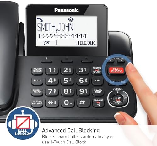 Automated Call Block pre-blocks robocalls; Telemarketing Call Block lets you to block announced callers; block 1K more with 1-touch Call Block Button on the base and handset.