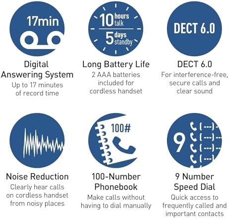 Built-in answering system ensures you never miss a call with up to 17 minutes of record time for messages. Retrieve messages from any handset.