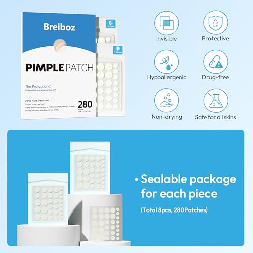 Pimple Patches for Face, 288 hydrocolloid patches, effectively cover and repair acne and blemishes, promoting skin regeneration. Ideal for makeup, skin care.