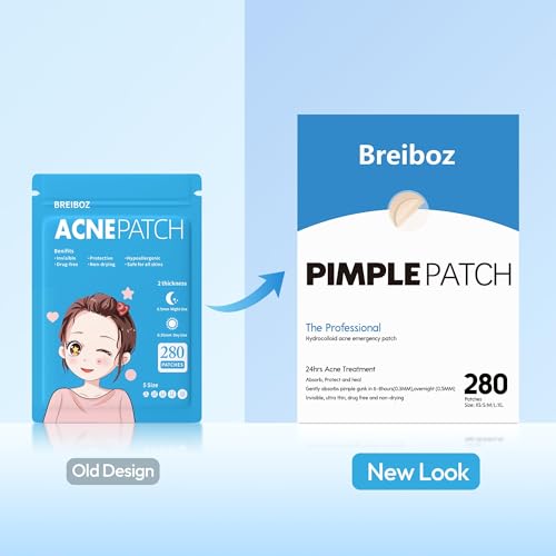 Pimple Patches for Face, Hydrocolloid Acne Patches, Zit Patches for Day and Night Invisible with Tea Tree, Salicylic Acid & Cica Oil-280 Patches,5 Size,2 Thickness