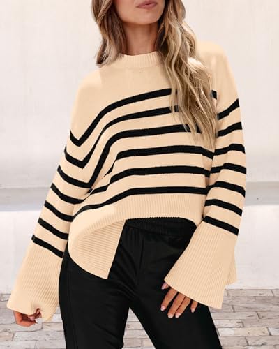 PRETTYGARDEN Winter Sweaters For Women Striped Pullover Sweater Fall Outfits