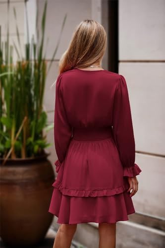 PRETTYGARDEN Women Long Sleeve V Neck Swing A-Line Dress Short Homecoming Dresses