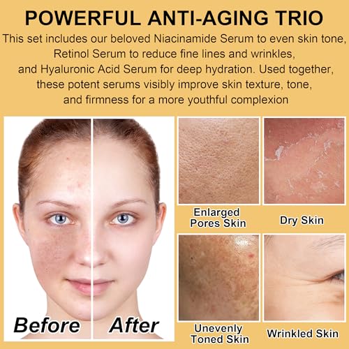 Professional Anti-Aging Skin Care Set Kit,Niacinamide Serum,Retinol Serum,Hylunaric Acid Serum,Skincare Gift Set,Facial Skin Care Products,Face Skin Care Routine Kit Christmas Gift for Women Wife Teen