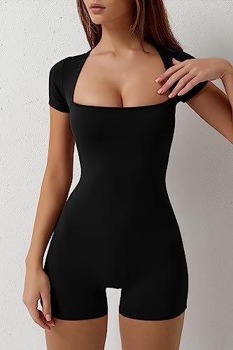 QINSEN Women's Seamless Cap Sleeve Shorts Jumpsuit