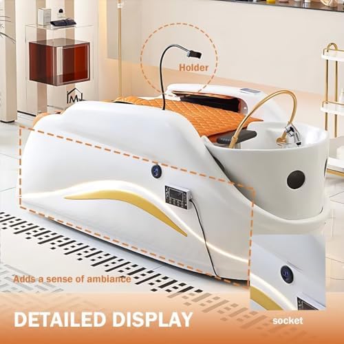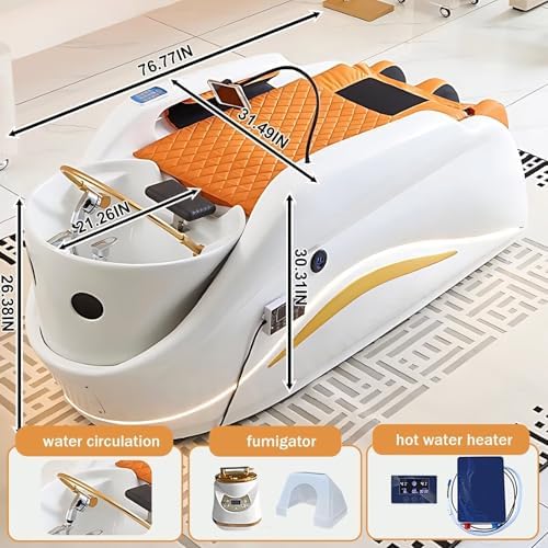 Salon Shampoo Bed-Massage Table with Unique Curved Modern Design, Head Spa Equipment& Beauty Bed Includes Water Cycle, Fumigation, Water Heater, USB Socket(76.77IN
