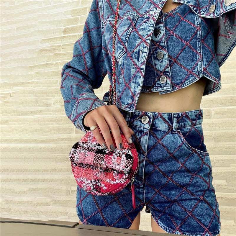 sense long sleeve short denim jacket women's Plaid suspender Top High Waist Shorts suit