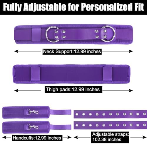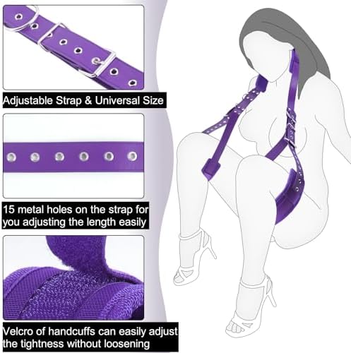 The thigh sling features luxurious leather padding that offers a soft and supportive embrace, allowing you to surrender to pleasure while maintaining utmost comfort. The leg spreader features a padded harness around the neck, ensuring luxurious support during play. The adjustable straps allow for a customized fit around the thighs or ankles, providing both security and flexibility.