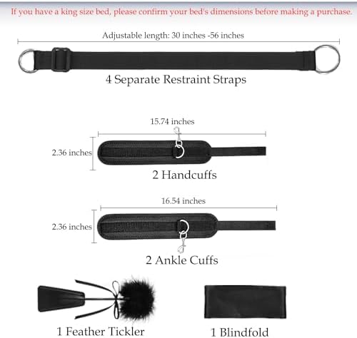 Sex Bondage Restraints BDSM Toys, Selver Versatile Bed Restraints Couple Sex Toys with Sex Straps Bondage Cuffs Blindfold & Feather BDSM Kit, Adult Sex Toys Bondage Gear & Accessories for Couples Game