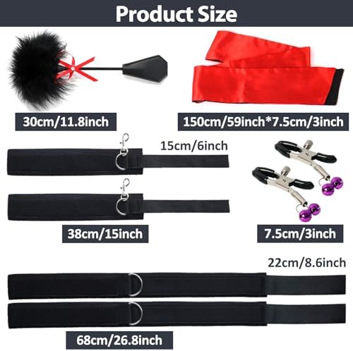 I finally had a chance to try this out a couple of days ago, and I have to say, it's pretty decent. I recently got back into kink play and have been trying a variety of tools and methods. If I could have started here, I would have. Mostly because you get a lot of easy to use tools, but not too many pieces to figure out.The nipple clamps were challenging for me to use, but ended up being just fine. Be super careful when putting these on. The tension is adjustable, which helps a lot. Start with the least tension, and then get help tightening them after they're applied BEFORE actual play, so that you don't have to awkwardly figure out if they're too loose or too tight in the heat of things. They also have removable rubber tips for if they start to wear down, or if you prefer a different material. My favorite thing about the set is the included tickler. You can use this to play around with your partner and find their sensitive spots. I learned a couple of new ones for myself.Good budget set for newbies.