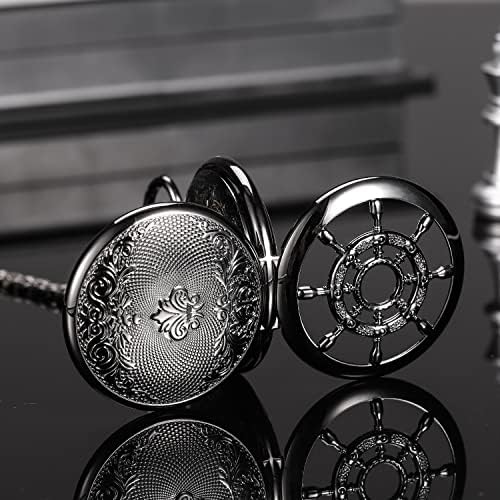 Beautiful watch and box. It is exactly as shown in picture, I would say it's even slightly better than the photo.I'm so glad we got the box to go with the watch. The box even come in a really nice box to wrap. It comes with a felt bag that holds the pocket chain. There is also a lint cloth packaged with it hor cleaning the pocket watch. We ordered this as a gift for our teen age daughter.You will want to leave the box open due to the wood box smells freshly lacquered.Air it out for a few days before you wrap it, if you are giving it as a gift