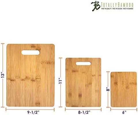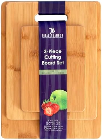 Crafted from Natural, Sustainable Bamboo Get your kitchen all set with this 3-piece cutting board set! The three sizes of cutting boards offer the right size for any food prep job. The small cutting board is perfect for garnishes. The medium cutting board is wonderful for fruit and vegetables. And the large cutting board is ideal for meat, poultry and fish. Each chopping board is masterfully crafted from bamboo wood. Bamboo cutting boards are lightweight, durable and knife-friendly. Discover the difference they'll make in your kitchen!