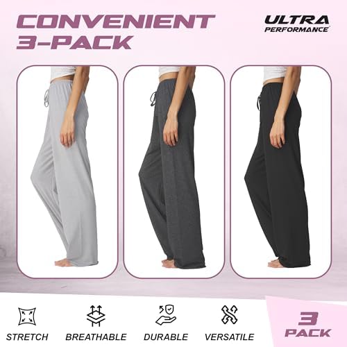 Ultra Performance Womens Pajama PJ Pants 3 Pack Lounge Bottoms Pajamas for Women (Avail in Plus Sizes)