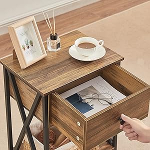 C: VECELO's brown nightstand set of 2 can coordinate well with virtually any room decor. The bedside table can be a focal point that ties the room together beautifully.