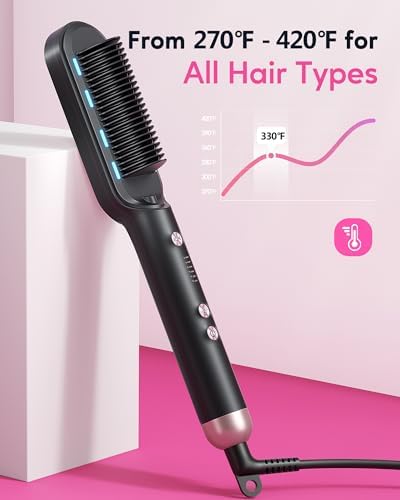 this is a game-changer for busy mornings! It heats up quickly and glides smoothly through my hair, leaving it straight and frizz-free in minutes. I love how it combines a brush and straightener—it’s super easy to use and doesn’t leave my hair flat or lifeless. The adjustable heat settings are a bonus, making it perfect for different hair types. Lightweight, effective, and time-saving—this brush is a must-have for anyone looking for sleek, salon-worthy hair at home!