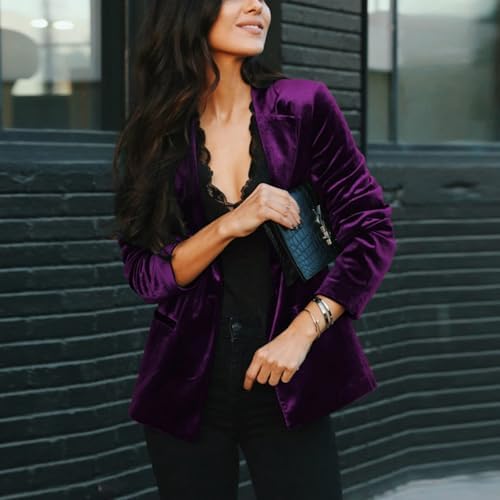MINTLIMIT Women's Velvet Long SleeveButton Front Notched Lapel Pocket Blazers
