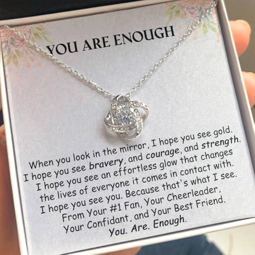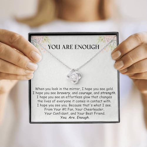 This necklace is not just for personal wear; it also makes a thoughtful and meaningful gift. In the realm of gift-giving, finding something that truly speaks to the heart can be challenging. The "You Are Enough" necklace stands out as an ideal gift, especially for friends. It’s a way to show your loved ones that you see their worth and appreciate them for who they are. By gifting this necklace, you're not just giving a beautiful piece of jewelry, but also a daily reminder of self-love and self-worth.