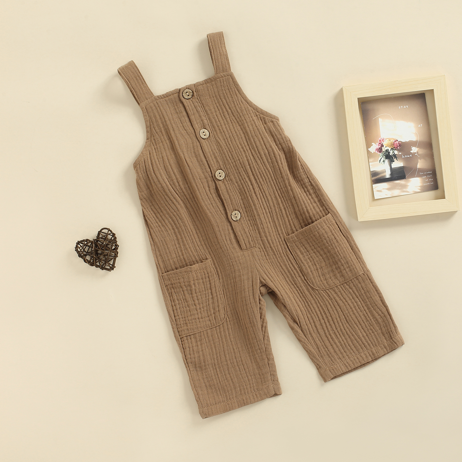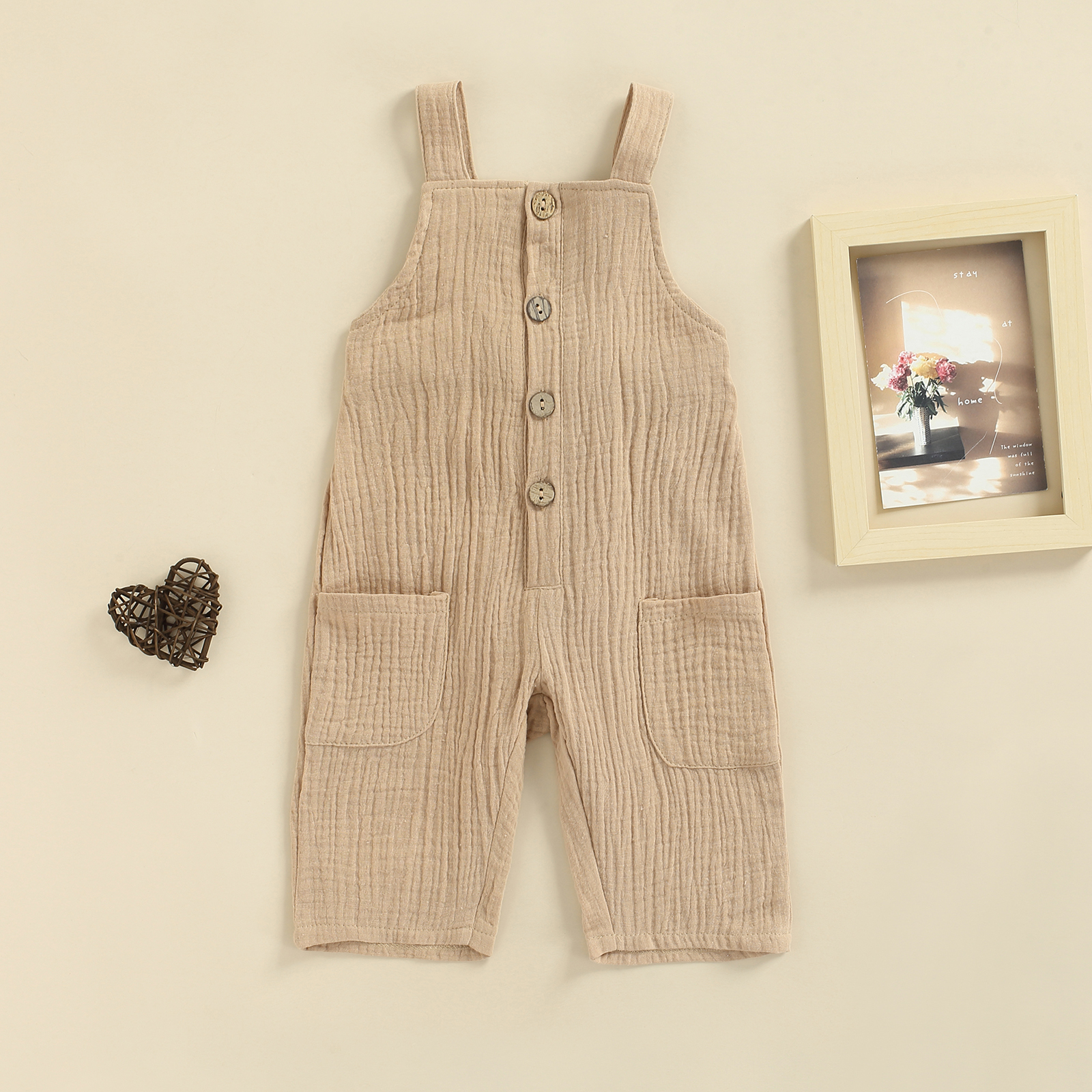 0-4Y Kids Loose Jumpsuits Baby Summer Clothing Girls Sleeveless Buttons Pockets Suspender Pants Children Overalls