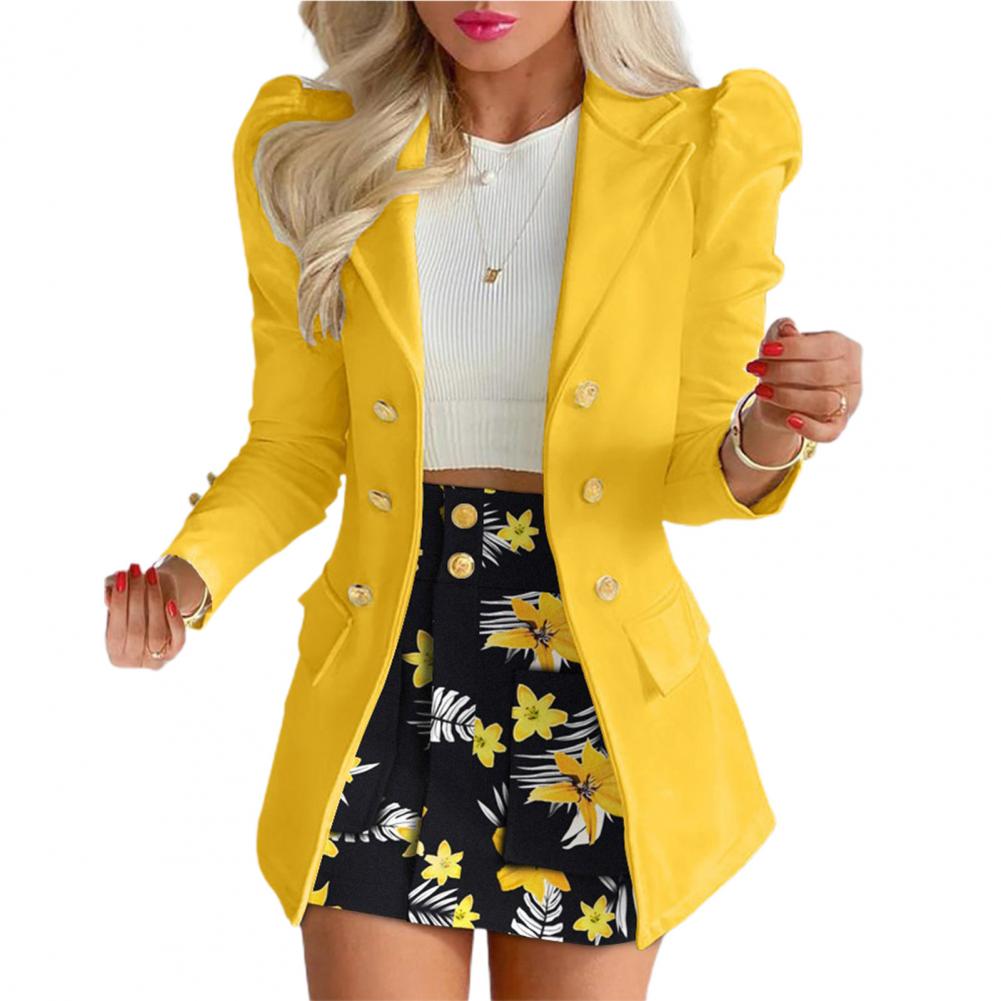 1 Set Women Blazer Set Solid Lapel Blazer Floral Print Skirt Two Piece Set Women Outfits conjuntos de falda Костюмы с юбкой