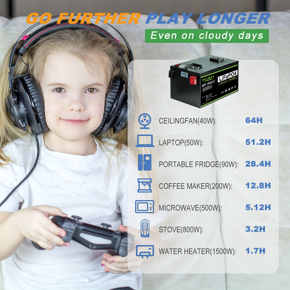 deep cycle lithium-ion battery has higher energy density, more stable performance and greater power. LiFepo4 battery will not burn when overcharged, overdischarged, overcurrent or short circuit, and can withstand high temperatures without decomposition. It can support fast charging and solar panel charging. Our LiFepo4 batteryis a green battery, it does not contain any heavy metals and rare metals and is more environmentally friendly.