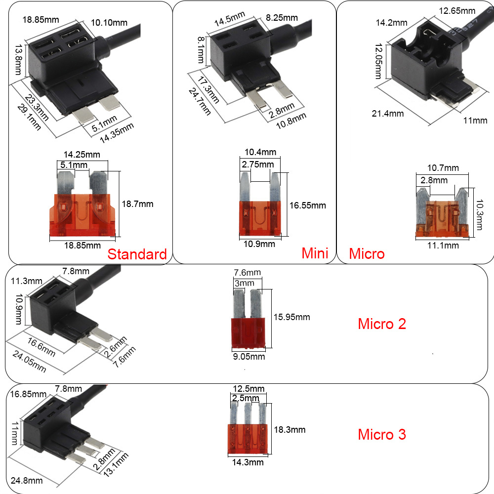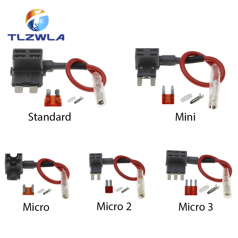 12V MINI SMALL MEDIUM Size Car Fuse Holder Add-a-circuit TAP Adapter with 10A Micro Mini Standard ATM Blade Fuse