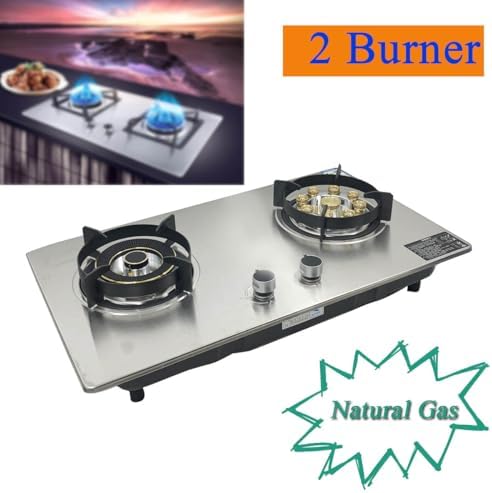Gas Cooktop 2 Burners Drop-in Natural Gas Cooker Gas Stove NG Stainless Steel Easy to Clean for RVs Home