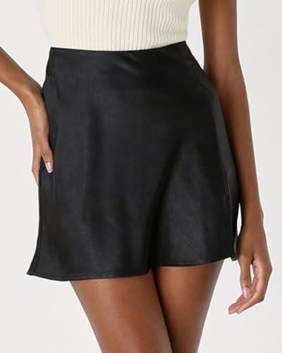 Women Summer Casual Stain Silk High Waist Short Mini Slit Skirts