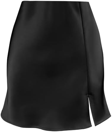 2025 Summer Mini Skirt Satin High Waisted Slit Front Silk Casual A-Line Party Short Skirts for Women