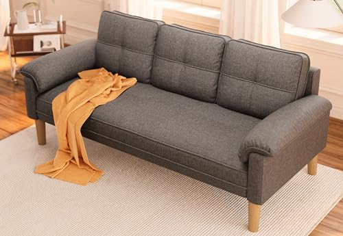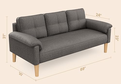 3 Seater Couch, 69 Inch Sofa Couch with Extra Deep Seat and Padded Armrests, Modern Sofa with Comfy Backrest and Solid Wood Legs, for Living Room Apartment, Dark Grey