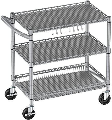 Equipped with 1 inch diameter poles, this rolling utility cart is heavy duty to store and transport heavy and bulky loads. High quality chrome anti-rust surface shelves.